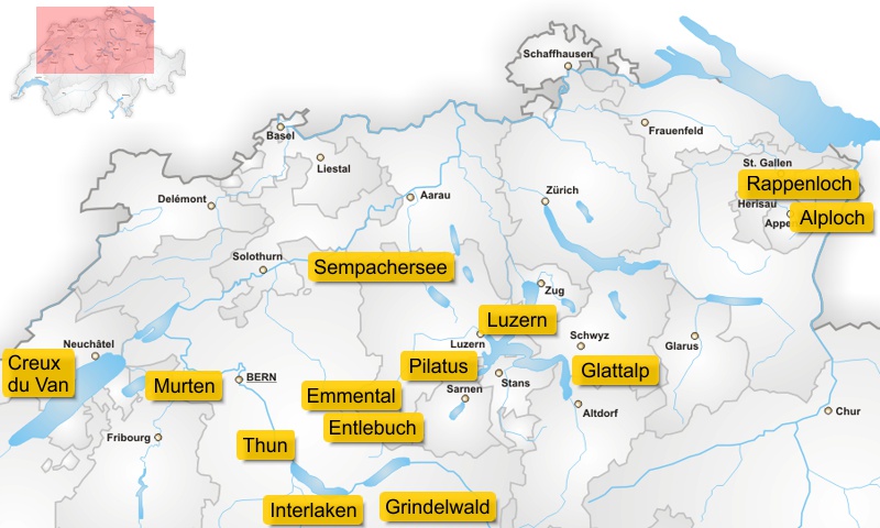 Unsere Fahrt in die Schweiz unterbrachen wir das erste Mal kurz hinter Bregenz am Bodensee in Österreich. In der Nähe von Dornbirn befinden sich zwei Klamms direkt hintereinander. Die untere Rappenlochschlucht wird durch den Staufen(stau)see von der oberen Alplochschlucht getrennt. Anfang des 19. Jahrhunderts wurde die Rappenlochschlucht zum Holztransport genutzt. Später kam die erste Staumauer zur Stromgewinnung hinzu. 1895 wurde der Stausee oberhalb der Rappenlochschlucht angelegt, um den Wasserdruck konstant zu erhöhen und die Flutgefahr zu dämmen. Der kühne Weg des Schleusenwärters durch die enge Schlucht ist der heutige Wanderweg.