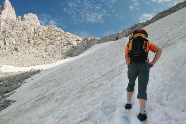 Für den Abstieg wählte ich den Weg über die Gaudeamshütte. Der erste Teil des Weges bis zum Schneefeld war identisch mit dem Aufstieg, bevor dann wieder ein langes Stück geröllgesurft werden musste.