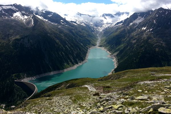 An den letzten beiden Tagen hatte sich das Wetter gebessert. Der Himmel zeigte sich wieder blau und der Regen blieb aus. Der Weg zur Olperer Hütte (2389 m) ist traumhaft schön und mit 2 Stunden auch recht kurz. Es geht kaum hoch und runter und im Tal liegt der majestätische Schlegeisspeichersee. Von der Olperer Hütte geht es ca. 600 Höhenmeter wieder hinab zum Speichersee. Der Weg zur Furtschaglhaus (2293 m) führt am Speichersee entlang und dann ca. 500 Höhenmeter hinauf zur Hütte. Christian verbrachte hier den letzten Abend bevor er wieder zum See hin abstieg und mit dem Bus das Tal verlies.