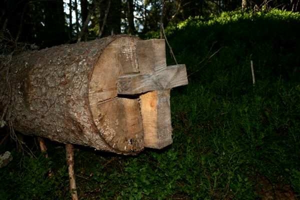 Wegkreuz beim Aufstieg durch den Wald.
