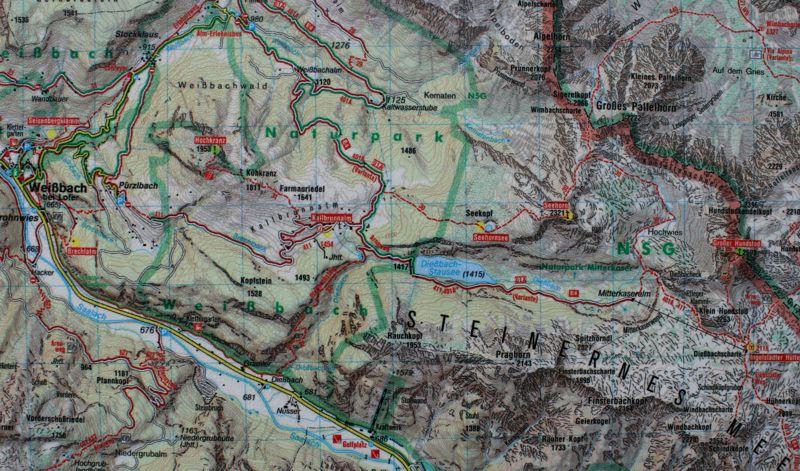Der Große Hundstod (2594 m) ist der vierhöchste Gipfel im Steinernen Meer und befindet sich südlich des Watzmanns genau auf der Grenze zwischen Deutschland und Österreich. Der Aufstieg beginnt in Pürzlbach, einem Ortsteil von Weißbach am Lofer. Der Wanderparkplatz ist leider nicht ausgeschildert, aber ich bin einfach so lange bergauf gefahren bis mir eine Schranke den Weg versperrte. Dort befand sich dann auch der riesige und bereits kurz nach 6 Uhr gut gefüllten Wanderparkplatz.