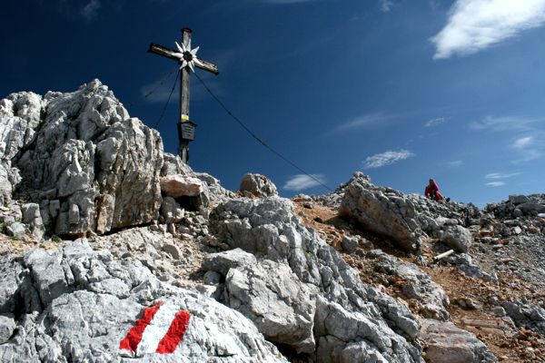 Das Gipfelkreuz des Großen Hundstod (2594 m) nach 3:45 h (reine Gehzeit).