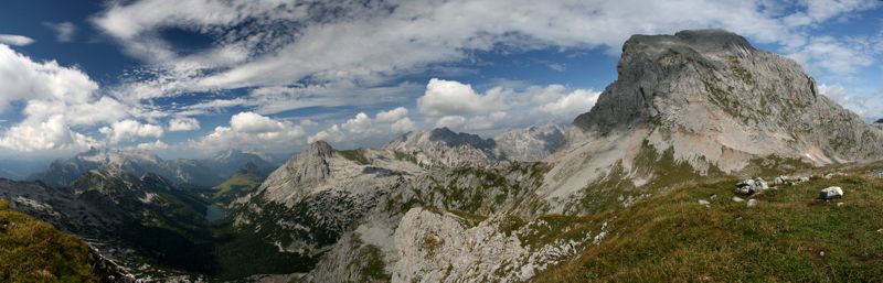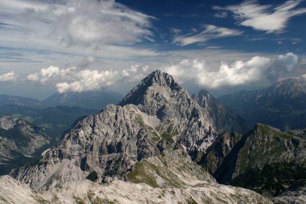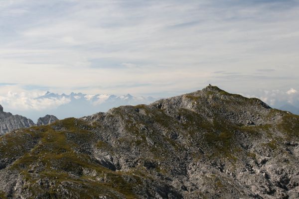 Vom Gipfel eröffnet sich ein Blick auf die Südspitze des Watzmann und das Wimmbachgries.