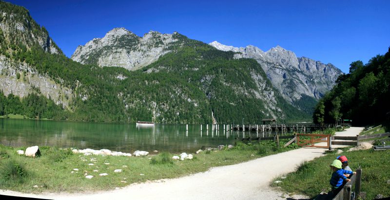 Anfang des Jahres ergab sich recht spontan die Möglichkeit an den Königssee zu fahren. Es war der erste warme Tag des Jahres und wir waren erst gegen Mittag am See. Wir waren nicht allein, denn auch andere Besucher haben das schöne Wetter genutzt. Die Fahrt über den See dauert 55 min und aufgrund des hohen Andrangs mussten wir über eine Stunde auf das nächste freie Schiff warten. An eine Wanderung zum Obersee war nicht mehr zu denken, so dass wir nur Sankt Bartholome besuchten und am Ufer mit Kinderwagen entlang spazierten. Die Rückfahrt war ein Fiasko, denn angeblich sollte 17 Uhr das letzte Boot fahren, aber von der Anlegestelle bis zum Gasthaus stand eine lange Schlange wartender Passagiere in der prallen Sonne. Wir brauchten fast 1,5 Stunden, um auf das Boot zu gelangen. Bei unserer Abfahrt war die Warteschlange nicht wirklich kürzer geworden. Einfach eine schlechte Organisation!