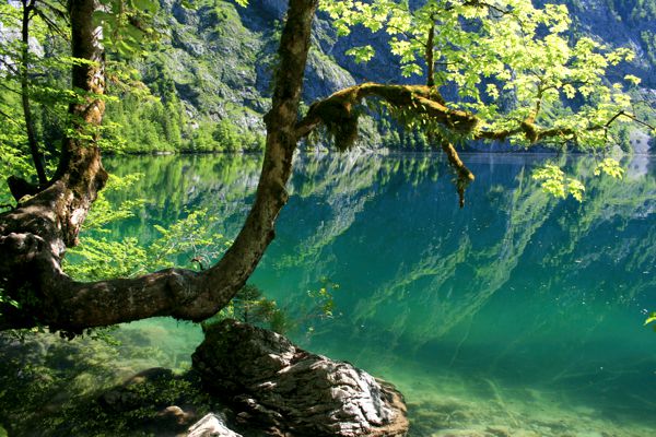 An der Fischunkelalm und am Ufer des Obersees legten wir eine kleine Pause ein. Das Wasser war herrlich warm und lud zum Planschen ein. Die Landschaft am Ober- und Königssee ist traumhaft. Saftig grüne Wiesen, junge grüne Blätter an den Bäumen, Sonnenschein, tiefblaues Wasser, Ruhe und Natur pur. Wahrlich ein Wanderparadies, was gegen Mittag aber recht voll wurde. Gegen 14 Uhr saßen wir bereits wieder im Boot zurück zum nördlichen Ende des Königssees. Zur gleichen Zeit haben sich in Sankt Bartholome schon wieder die ersten Warteschlangen gebildet.