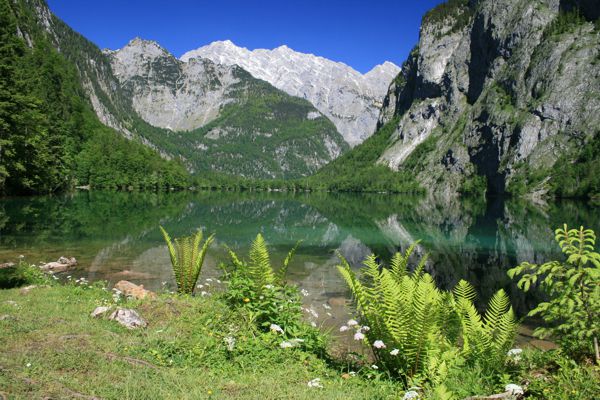Blick von der Haltstelle Salet über den Königssee zum Watzmann.