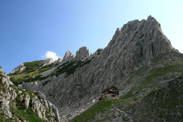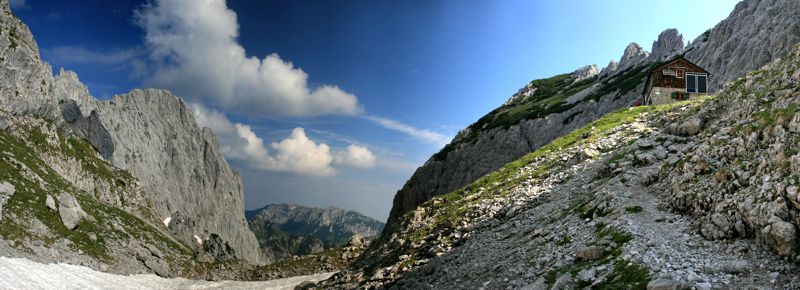 Der Startpunkt für die Besteigung des Mitterkaisers ist die Giesner Alm. Am frühen Morgen schnürte ich meine Wanderschuhe und begann mit dem Aufstieg. Der Weg folgte zunächst dem Aufstieg zum Stripsenjochhaus, zweigt aber dann bald in Richtung Osten zum Fritz-Pflaum-Haus (auf 1866m) ab. Obwohl die Hütte leicht zu erreichen ist, ist es wohl angeblich die ruhigste und einsamste Hütten im ganzen Kaisergebirge.