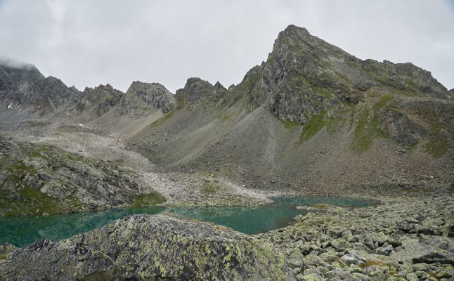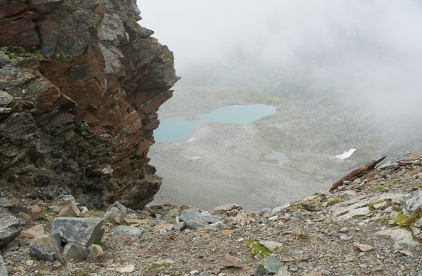 Nachdem Abstieg besuchte ich den Rinnensee. Das Wetter besserte sich etwas und endlich konnte ich die Rinnenspitze sehen. Ich folgte dem Weg über ein kleines Schneefeld in die Obere Rinnengrube und von dort einen recht wilden Weg hinauf aufs Rinnennieder (2899 m) – einer kleinen Scharte mit nochmals gutem Blick auf den Lüsener Ferner. Sehr ruhig und lohnenswert.