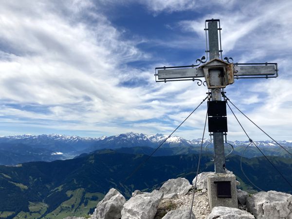 Gipfelkreuz auf dem Hochzint mit Blick Richtung Süden.