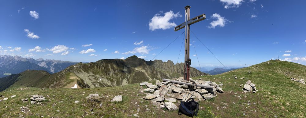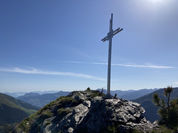 Der Gipfel des Kuhmessers mit Kreuzjöchl und Kapelle im Hintergrund.