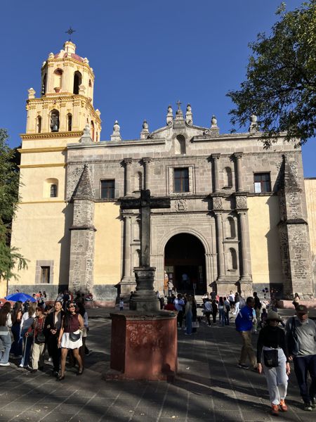 Vor der prächtigen Kirche Parroquia San Juan Bautista wurden mexikanische Tänze in Tracht aufgeführt. Die Kirche ist ein Ort der Stille und Ruhe. Der Trubel auf dem Platz davor wird hier drinnen, in angenehmer kühler Umgebung, komplett ausgeschlossen.