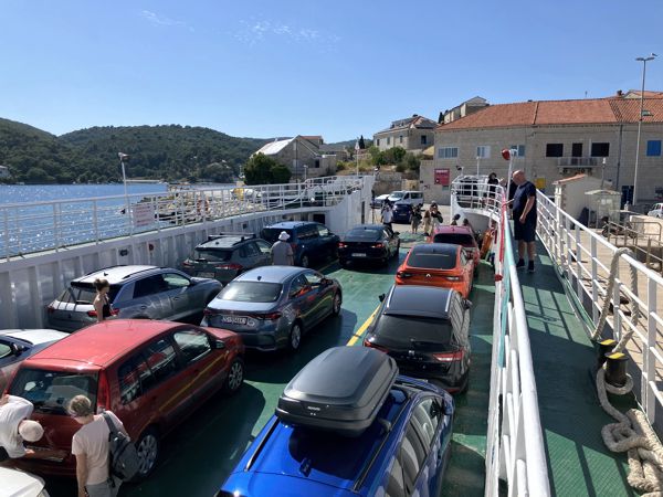 Für unseren Ausflug nach Brač wählten wir die Fähre von Makarska nach Sumartin. Die Autofähre war wirklich klein und nicht zum vorwärts Durchfahren gedacht. Alle Autos mussten rückwärts auf die Fähre hochfahren und in den schmalen Gassen einparken. Wirklich eine Herausforderung! Nach einer Stunde bei der Ankunft in Sumartin konnte die Fähre wieder vorwärts verlassen werden.