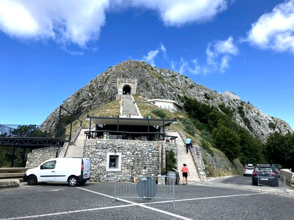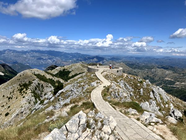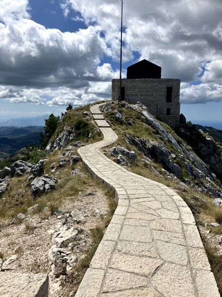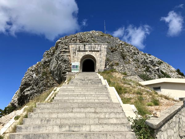 Auf der Rückseite des Mausoleums führt ein gewundener Weg den Grat entlang zu einer Aussichtsplattform mit Blick auf den Štirovnik und bis hinab in die Bucht von Kotor. Wir waren hier oben fast eine Stunde allein. Ein magischer Ort mit einer ganz besonderen Ausstrahlung, auch wenn es nur 14°C in der Höhe hatte.