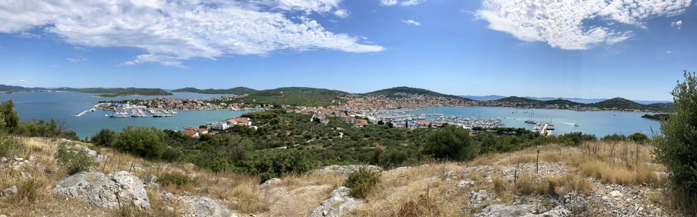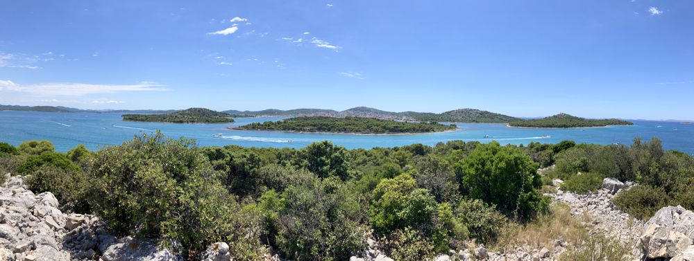 Der Rückweg durch die Inselwelt war anstrengender, aber dennoch schön. In den nächsten Tagen sollte sich nicht noch einmal die Möglichkeit ergeben weitere Inseln im Meer zu erkunden, weil Wind und Wellen deutlich stärker wurden. Wir badeten und schnorchelten noch ein wenig am Ausgangspunkt unserer SUP-Tour und ich bestieg den kleinen Berg Vrh Gradine (63 m) mit Blick über die ganze Inselkette, den Ort Murter und bis zum Festland.