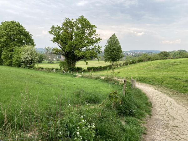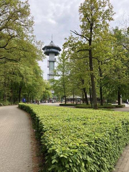 Meine Wanderung begann ich aus dem Aachener Stadtteil Vaalserquartier, wo der Wanderweg direkt am Rande eines Wohngebiets startete (Keltenstraße). Ein breiter Feldweg führte vorbei an alten Linden und Eichen an den Bergwald heran. Im Wald führt der Weg zünftig nach oben bis zum nördlichsten Punkt des Bergrückens, den Wilhelmina-Turm (Gesamthöhe 353.5 m). Entlang des Viergrenzenweg führte der Weg weiter Richtung Süden vorbei an Restaurants und Parkplätzen bis zum Baudouin-Turm (50 m hoch) auf belgischer Seite. Unterhalb des Baudouin-Turms befindet sich der Dreiländerpunkt. Leider war bei meinem Besuch das Wetter sehr diesig, so dass keine schöne Fernsicht möglich war.