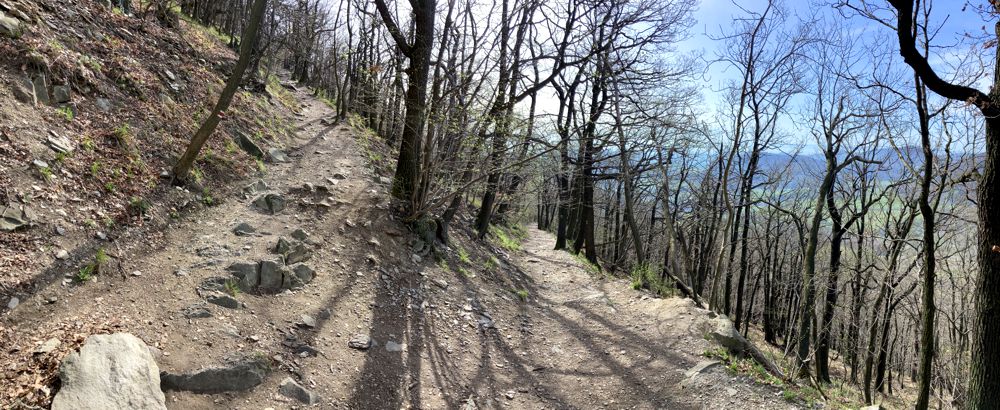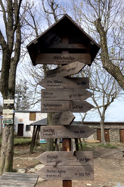 Ein guter Ausgangspunkt ist die Wanderung ab Milešov mit großem Wanderparkplatz bei den Sportplätzen. Andere Aufstiege sind möglich aus Bílka und Černčice. Alle Strecken sind rund 2.5 km lang, steinig, aber leicht zu laufen. Der Weg führt durch einen Laubmischwald zunächst flachansteigend, später eher steil in wenigen langgezogenen Serpentinen mit 420 Höhenmetern in die Höhe. Mit zunehmender Höhe werden die Bäume lichter und der Blick reicht weit in die Ferne zu anderen Vulkankegeln, zum Erzgebirgskamm oder dem Ještěd bei Liberec. Auf dem Gipfel befindet sich ein meteorologisches Observatorium und eine Hütte mit Restaurant zum Übernachten. Der Aussichtsturm war während meines Besuchs leider aufgrund von Renovierung nicht zugänglich. Der Milešovka hatte schon viele bewundernde Besucher wie den preußischen König Friedrich Wilhelm III und in diesen Begleitung Alexander von Humboldt, der die schöne Aussicht lobte. Auch Caspar David Friedrich hielt die Berge auf der Leinwand fest.