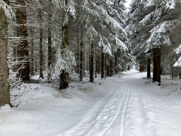 Über den Lugsteinweg und der Schneise 28 führte der Weg vorbei an der Biathlonarena leider auf einer zwischendurch teilweise asphaltierten und freigeschobenen Straße zurück zum Startpunkt am Wanderparkplatz.